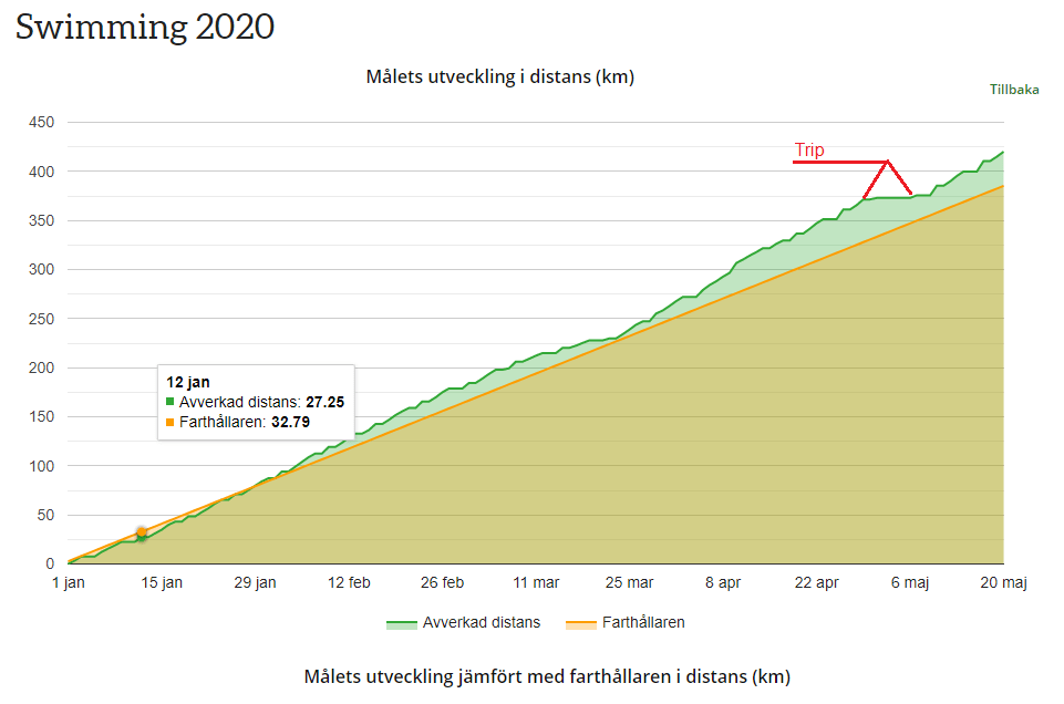 The three missed pool swims will effect my ability to reach 83 km in May, but I had a big enough buffer through four months in 2020 that I am still ahead of my 1,000,000m target.