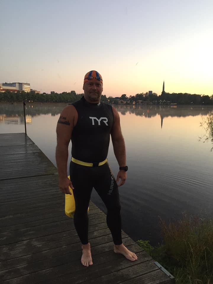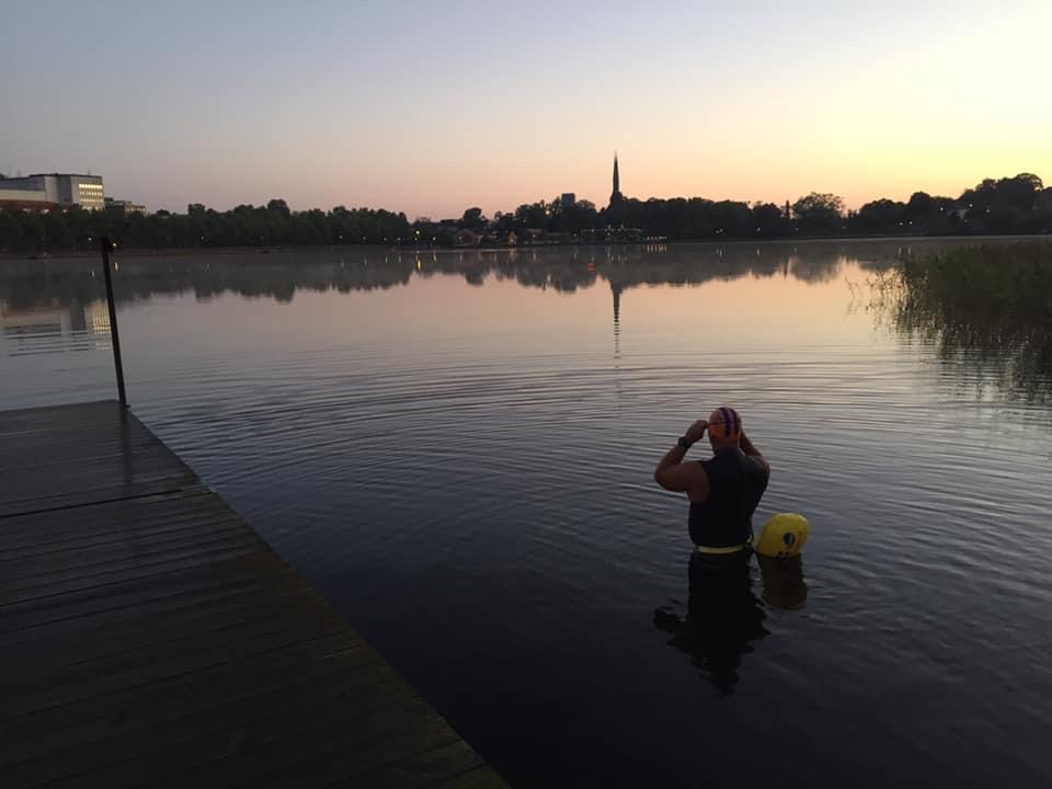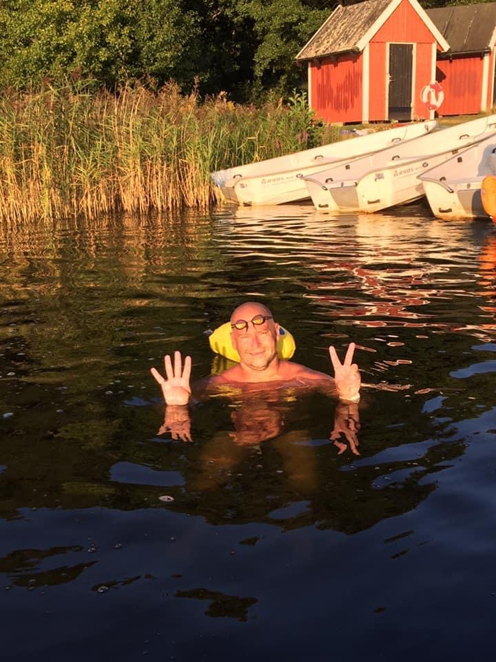 Last year in October I was one of 14 swimmers with the honor to be able to sign up for 42+km swim. The race was called The Viking, and was a two way swim of Vidösternsimmet (21+km). The 14 of us would start at night Friday the 7th of August, calculating average swim speed in order to get to the start of the return no later than 07:00 the 8th. I went all in for this race. I had one of the strongest swimmers I know (Hampus Carlsson) as my partner for the first half night swim, and I started pushing myself on our Wednesday distance workouts like never before with our super distance coach Nedal. In January I took on the 1,00,000m challenge to help motivate me to get the distance training I would need for this years goal.