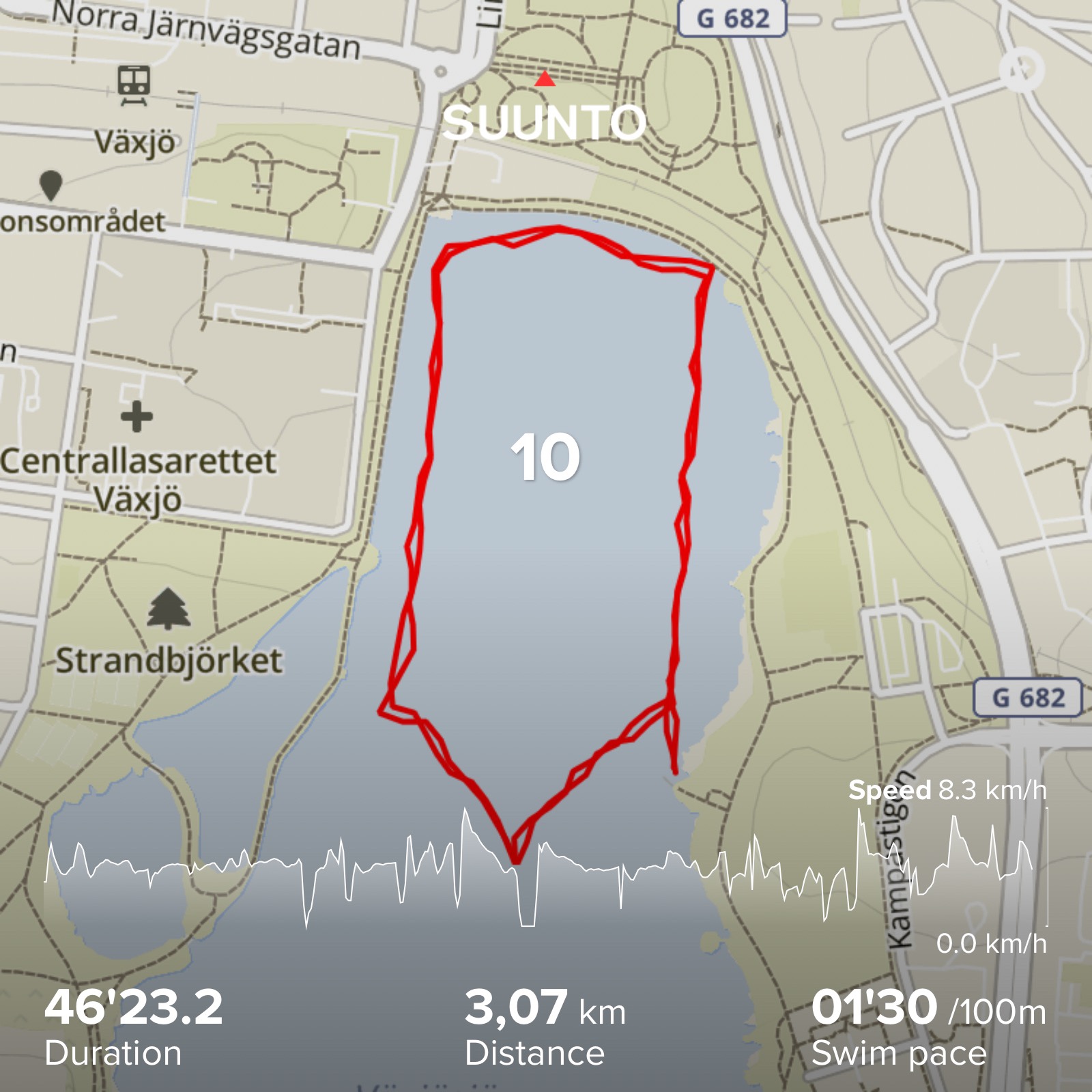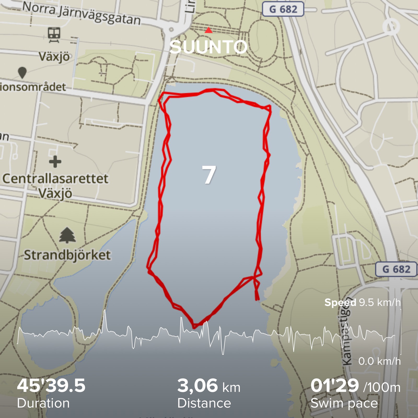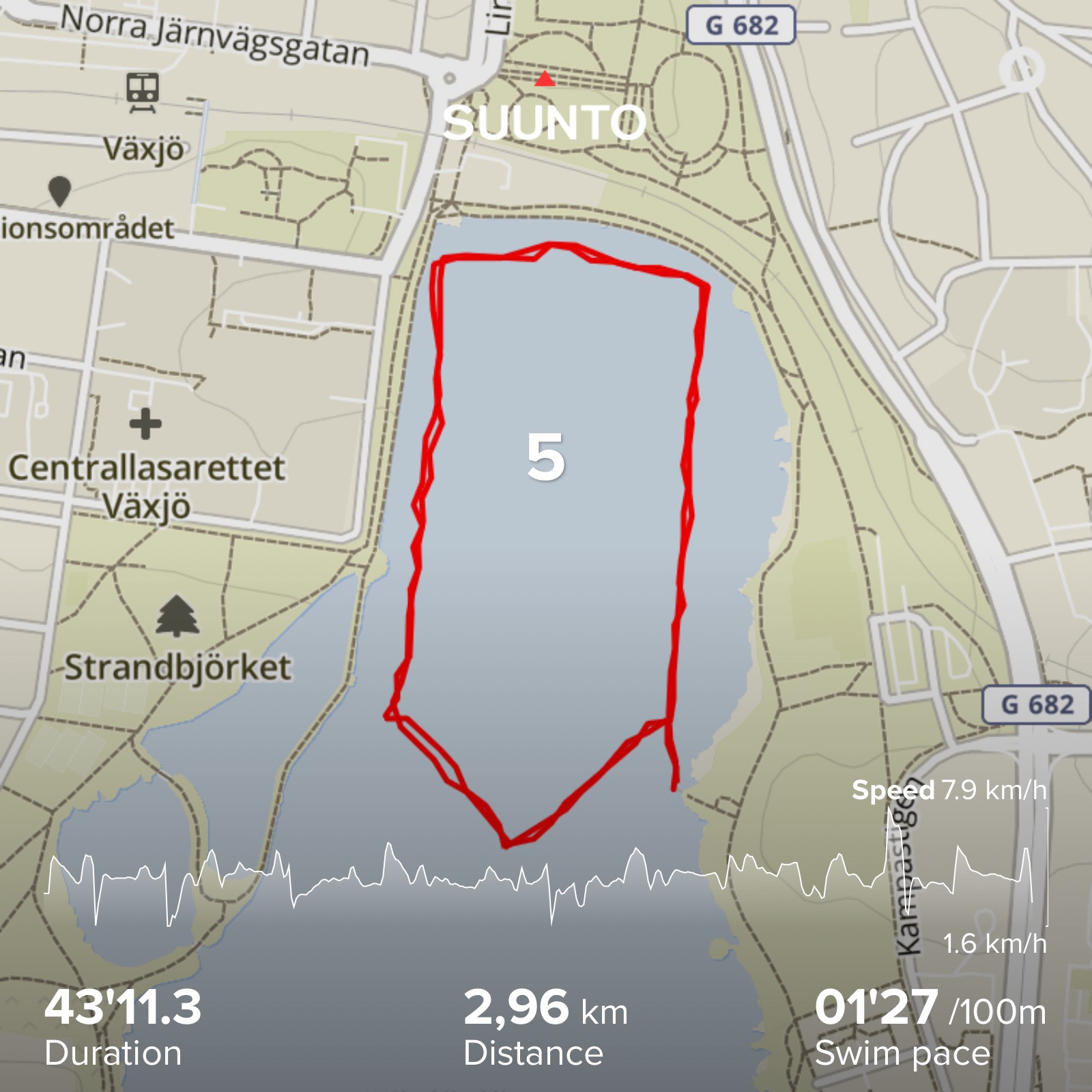 At 10:01 I start my 6th swim. The sun and warm water is really starting to get to me. But I try to find a relaxing stroke and keep my head down, only looking up when I have too. This swim took 44:28 and now I have something new to think about. My first Vansbrosimningen back in 2007 took me 45:15. I was so disappointed that I didn’t swim under 45, and now here I am 13 years later and I just managed six in a row under 45 minutes.